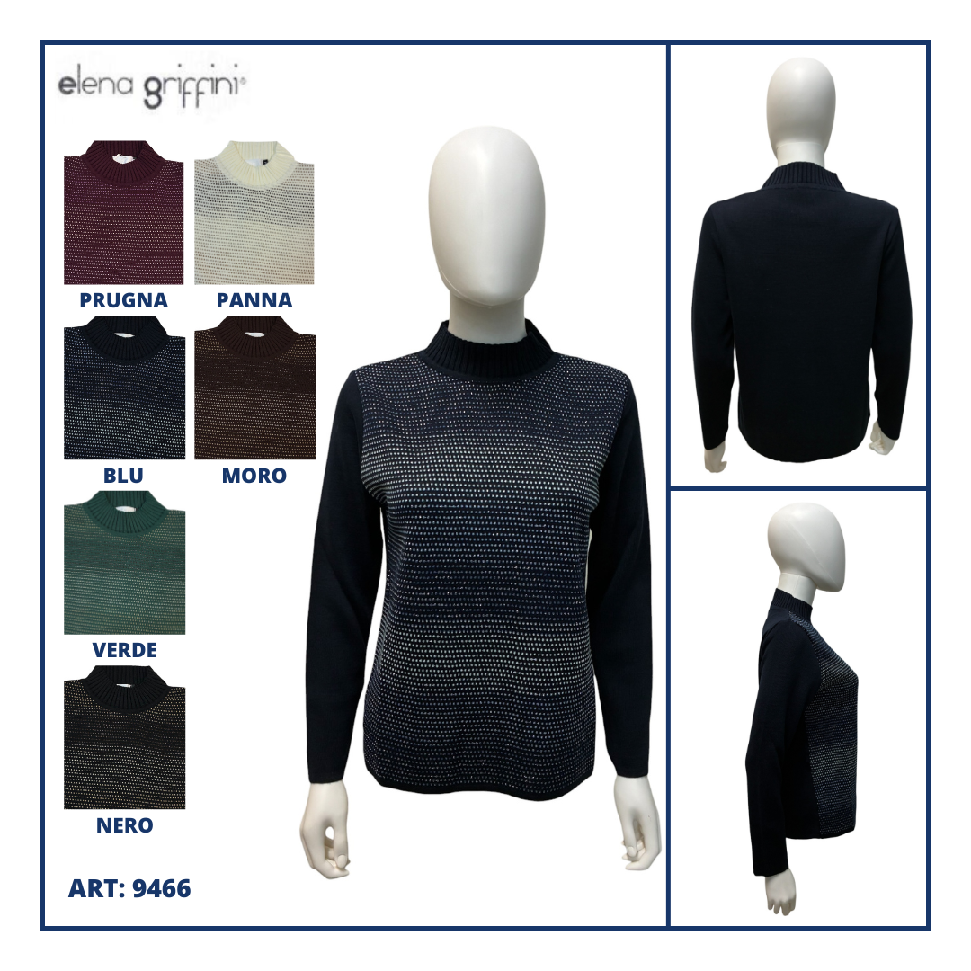 Maglia lupetto manica lunga in misto lana, lurex e sfumature di colori lato anteriore.