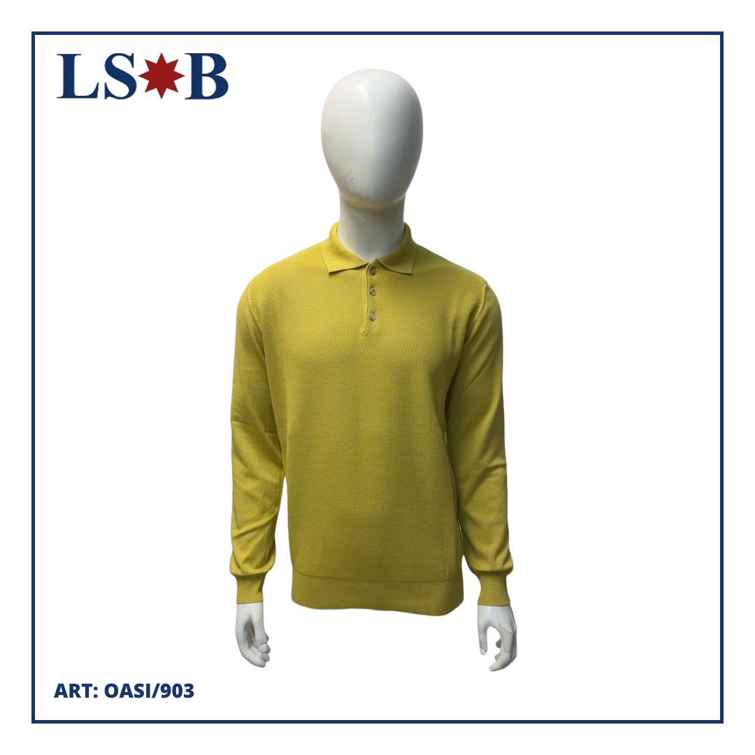 Maglia polo chiusura tre bottoni manica lunga in puro cotone.